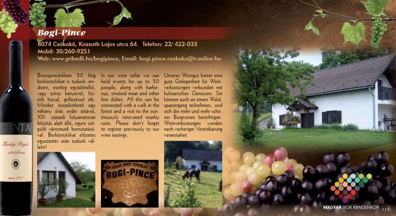 Honlap: www.gribedli.hu/bogipince